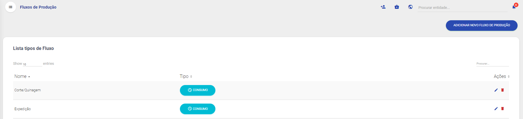 Para adicionar, poderá clicar na opção de “Adicionar novo fluxo de produção” e preencher o pequeno formulário e definir o seu nome e tipo. Confirme para guardar.