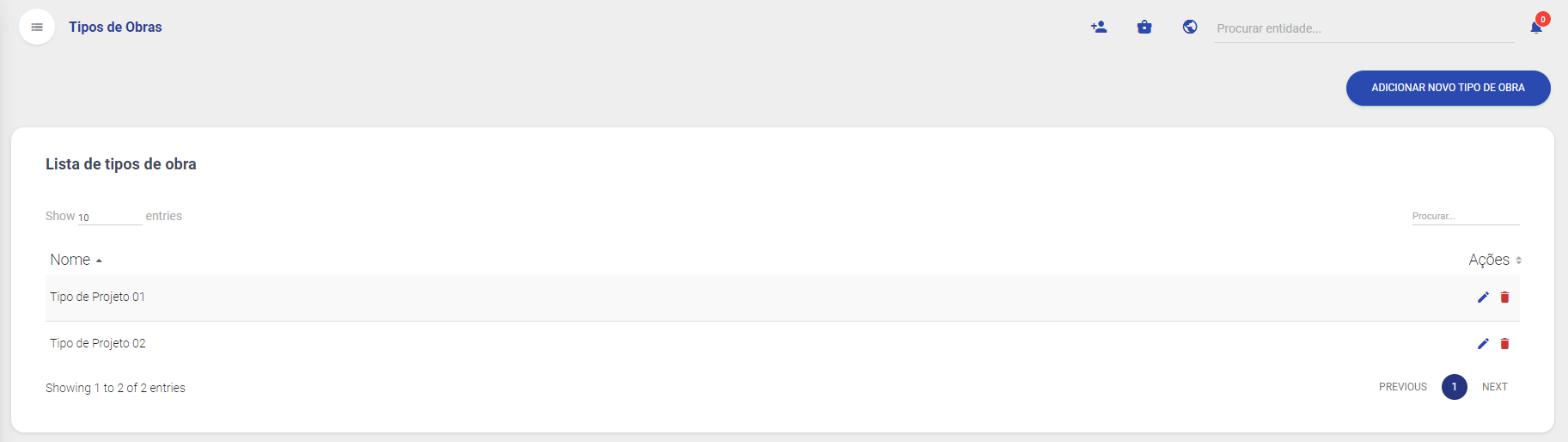 Defina os tipos de documentos que existem na sua organização, de modo, a conseguir posteriormente anexá-las ás obras e/ou projetos.